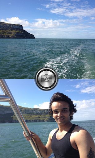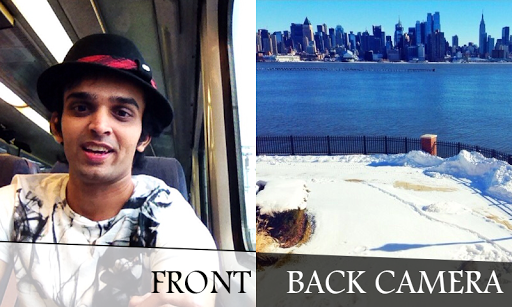This DuoCam application lets you take a picture with both the front and back camera and combine them in one single photo without any photo editing.