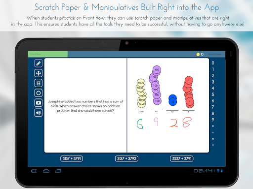 Front Row Math is the only math program made by teachers, for teachers. Front Row Math provides over 15 thousand common core aligned questions that are graded automatically and given to students based on their level. This means no writing worksheets, no grading, and differentiated teaching made easy.
