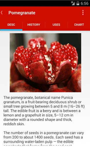 * Description - Image of the fruit with basic details like the Scientific name , Nature etc .