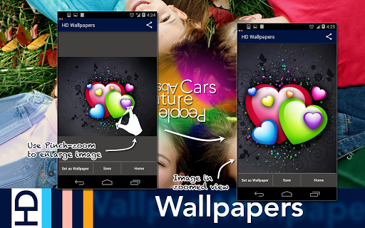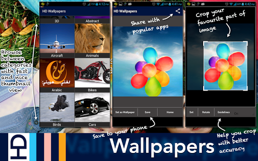 Full HD Backgrounds' is a user-friendly Android application that allows you to choose and select a background image from a large collection (50,000 plus) of categorized High Definition images. Simply navigate to your chosen image, using the 140 intuitive categories and sub-categories, and upload it to your phone. Fast, reliable and simple.