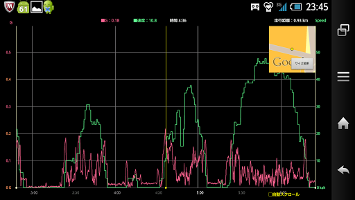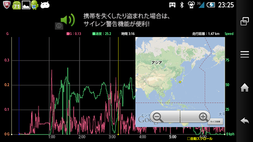 ・保存したデータは、速度・Gのグラフとマップの位置情報で表示できます。