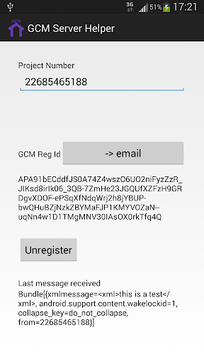 3. Send the assigned GCM registration id by email to you server\'s developer workstation