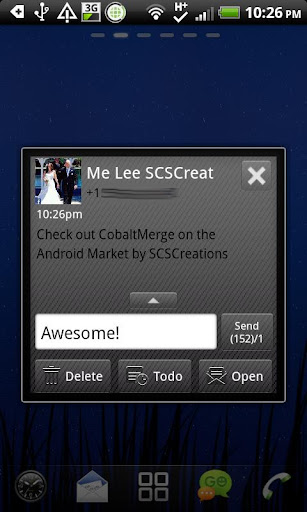 -Custom Font Colors (if you do not like the font color that the themes comes with, you can customize the theme font and font colors in the settings menu under the "advanced" tab in Go SMS Pro. This can be done with ANY Go SMS Pro theme).