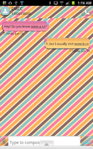 -Custom Font Colors (if you do not like the font color that the themes comes with, you can customize the theme font and font colors in the settings menu under the "advanced" tab in Go SMS Pro. This can be done with ANY Go SMS Pro theme).