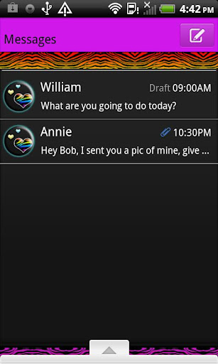 -Custom Font Colors (if you do not like the font color that the themes comes with, you can customize the theme font and font colors in the settings menu under the "advanced" tab in Go SMS Pro. This can be done with ANY Go SMS Pro theme).