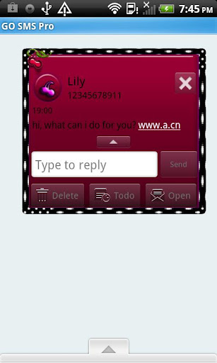 -Custom Font Colors (if you do not like the font color that the themes comes with, you can customize the theme font and font colors in the settings menu under the "advanced" tab in Go SMS Pro. This can be done with ANY Go SMS Pro theme).