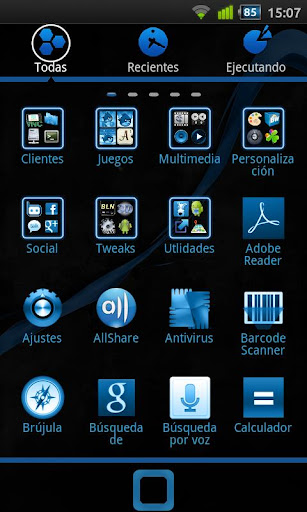 它的設計絕對獨家,主題顏色藍色和黑色背景設計的圖標,包括主題的各種元素。