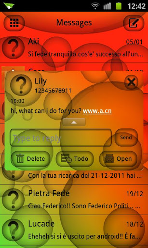 請記住:這是一個 GO短信,所以你需要在您的手機(免費)上安裝 GO短信臨臨主題。安裝主題後不開放市場,但選擇從 GO短信專業設置。