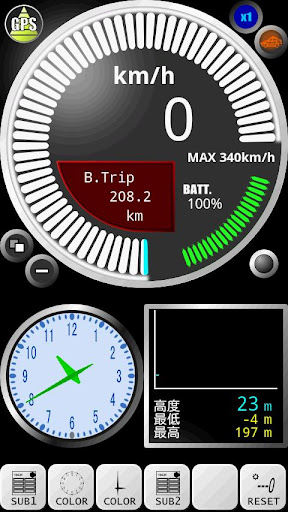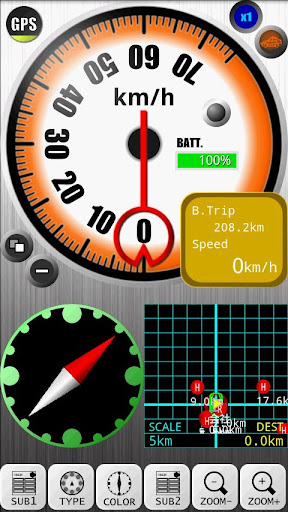 端末のGPS機能や加速度・傾きセンサーを使用した、スピードメーターアプリです。