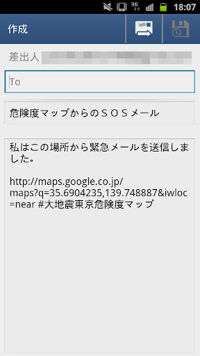 ・Twitter、Facebook : 緊急メールボタンを押すと、あらかじめ登録したメッセージ・今いる場所(現在位置情報)を、ログインしたアカウントへ配信します。