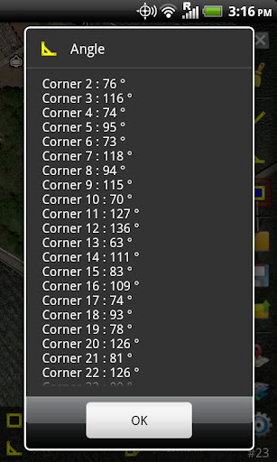 “GPS面積測量”是一個極好的計算在地圖上的區域中的應用。應用程序提供了正確的長度和角度信息的所有邊緣。