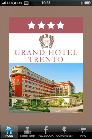 Grazie alla App del Grand Hotel Trento, situato proprio nel centro storico della medesima città, potrete guardare in anteprima la struttura tramite la galleria fotografica e scoprire tutti i servizi effettuati dall'Hotel, ottenendo anche informazioni più dettagliate sulle importanti e bellissime sale congressi.