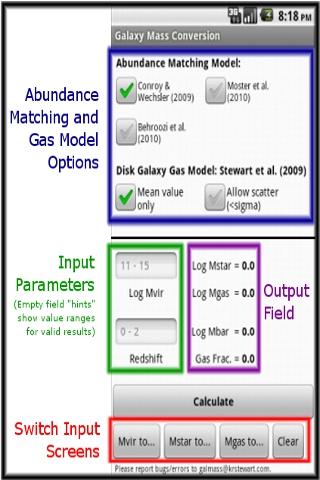 This astrophysics app converts between different galaxy masses (dark matter virial mass, galaxy stellar mass, and galaxy gas mass) as a function of redshift, based on abundance matching.