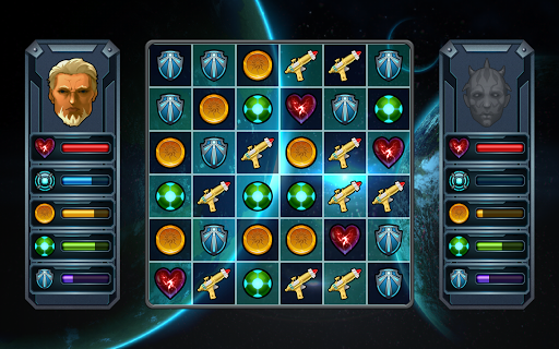 As this star saga unfolds, you will need to improve your matching strategy as your alien challengers become smarter and more powerful the further you travel through space. Along the way, you will engage enemy aliens in laser gun battles, mine colorful gems and jewels on distant planets and race alien spaceships through space gates and portals.