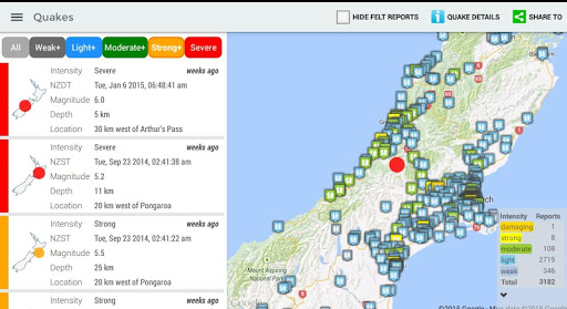 * Share quakes (via SMS, email, Twitter, Facebook, Google+, etc.).