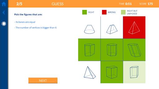 - Work through exercises to practise what has been learned: guess the geometric shape, confirm characteristics and calculate area and volume