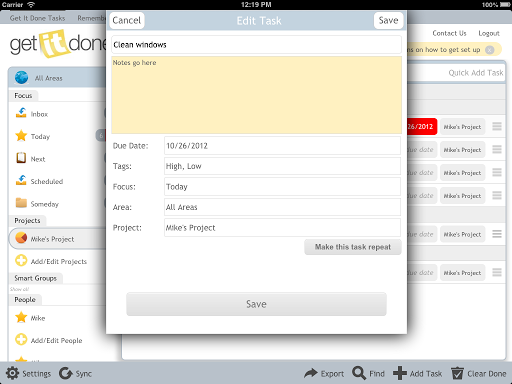 This app is a mobile version of GetItDoneApp.com. You can sync wirelessly with the online app (sold separately) or you can use just the mobile app alone.