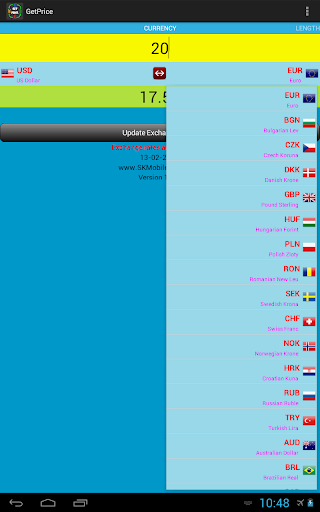 Getprice is an global converter application which mainly focus on currency conversion one to another. It can work offline and exchange rates can manually be updated by users. It does not only makes currency conversion it also converts, length, mass. speed, volume, temperature.