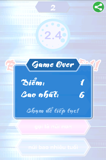 - Khi chơi thua, chạm màn hình để tiếp tục.