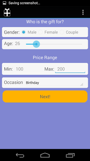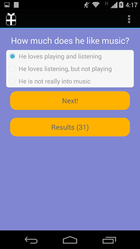 Gifting asks you questions about the person that will be receiving the present and filters down categories and products from eBay to get you the best gift ideas ever! It's really simple to use and you can even buy the products from eBay (purchase screen opens up in a browser window).