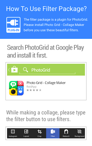 This filter package is a plugin that only works inside Photo Grid - Collage Maker (applying for versions above 4.85). You can download Photo Grid - Collage Maker for FREE at here: