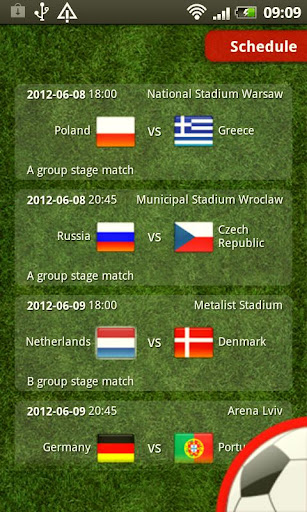 Go EURO 2012 allows you easy access to information about your favourite teams, the matches, results, rankings, latest news and lots of information about the host cities and stadiums.