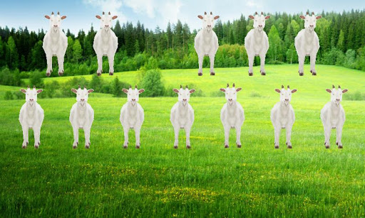 They move in a funny way and bleat. Each goat corresponds to a piano key with realistic pitch intervals. From realistic pitch to very high-pitched bleating.