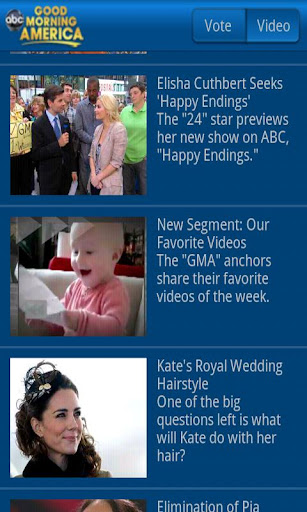 Be a part of Good Morning America with the OFFICIAL Good Morning America App! Vote on a series of daily polls that we will feature on-air during every program. Plus - As the results come in, see how your choices compare with other voters. Also, watch GMA video clips right on your smartphone. It’s a new way to experience Good Morning America.