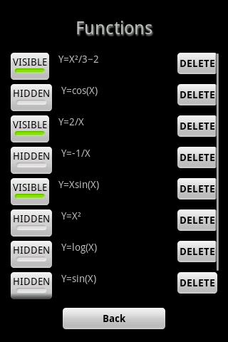 Use pinch zoom (two-finger zoom) to zoom graphs on multitouch devices. On older devices you can use one-finger zoom. Just long press the graphs to enter the zoom mode. Then just drag left/right/up/down to zoom. The scale grid is automatically updated. To select the interesting parts of the graphs has never been easier! With Graphoid calculator you can focus on inspecting graphs of functions, not how to use menus.
