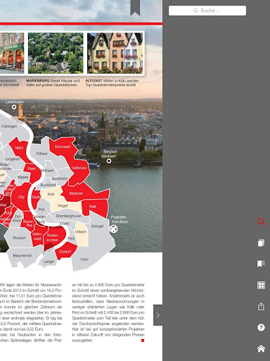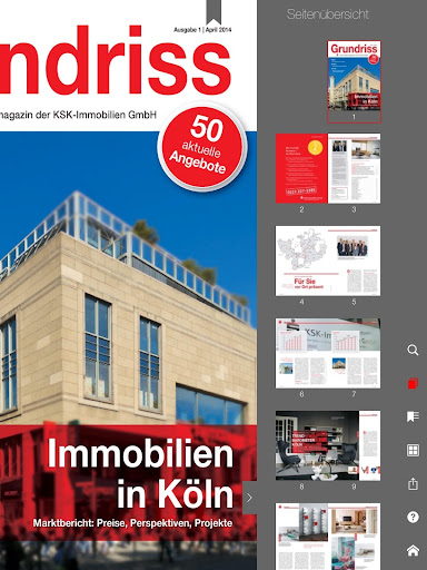 Beiträge über aktuelle Themen der Immobilienbranche halten die Leser auf dem neuesten Stand. Darüber hinaus stellt die KSK-Immobilien GmbH, Immobilienmakler der Kreissparkasse Köln, eine exklusive Auswahl ihrer Immobilienangebote vor. Darunter befinden sich attraktive Häuser und Wohnungen in Köln, im Rhein-Erft-Kreis, im Rhein-Sieg-Kreis, im Rheinisch-Bergischen Kreis und im Obergergischen Kreis.