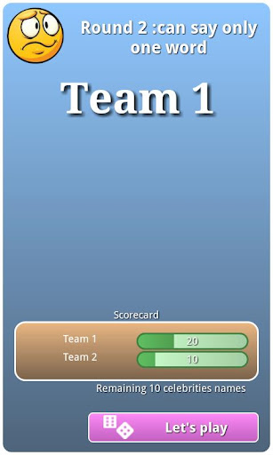 The next team then picks a clue-giver which takes the device and play continues until there are no more names. Teams must rotate the clue-giver each round until every member of the team has been given a chance. The round ends when all title/names have been guessed. The current team will take the last turn in the next round, the next team who will start the round.