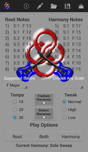 This app allows you to write and save your guitar riffs on the go. No guitar available at the moment? No worries. Now you can write your music on your phone! Guitar Harmony also uses a complex musical algorithm to write the best possible harmony pieces to go along with your riffs, and lets you play them back together or separately!!! It will even tell you the string and fret of each harmony note so that you can learn to play it on an actual guitar with your friends later.