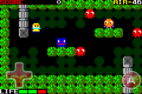 You can move characters with the up down left and right buttons. You can shot wave gun with A-Button. If you destroy all blue monsters, the door to next stage is opened.