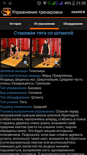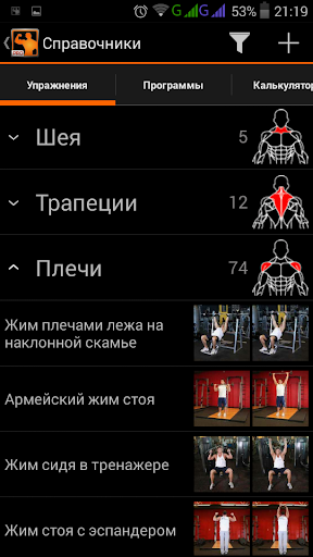 * открывать для себя новые упражнения, используя фильтр по параметрам (мышцы, усилие, уровень подготовки и др.)