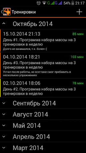 * фиксировать результаты всех своих тренировок в удобном и логичном виде (поддерживаются суперсеты!)