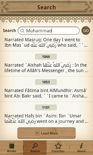• SEARCH: Find a relevant hadith for any word or phrase across all 6 books using the built-in search features.