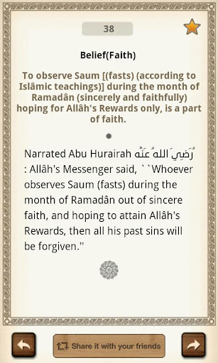 • Help your friends, family and colleagues gain knowledge by sharing Hadiths through Facebook, email and SMS.