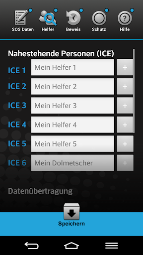 vervollständigen Sie bitte alle Angaben in den Menüpunkten “SOS-Daten“ und „Helfer“.