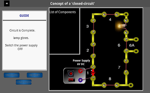 • Drag and drop electronic components in the form of symbols and build circuits on a template-circuit board. Press “Simulate” button to transform the circuit built to come “alive” with “real components”!