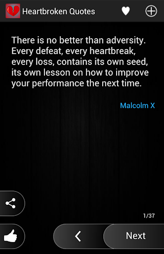 Using the app with heartbroken quotes and sayings is easier than anything! First of all, you need to get an access to internet for downloading the app and install it with one click. Then you are all ready to explore what this heartbroken quote app has for you. You only see one quote at a time and can go on to the next by clicking on “next” button or return to the previous quotes about being heartbroken with “back” button.
