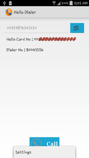 HelloDialer Application will help you to make international calls using pre-configured Hello Calling Card number.