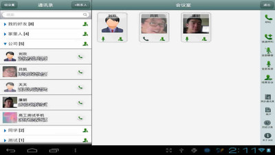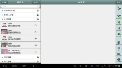 在您拥有自己的Hi吧后,只需将您朋友的联系电话添加进通讯录,然后在需要跟他们聊天的时候,把他们从左侧通讯录中添加到右侧会议室就可以聊天和开会了。聊天中,您可以选择将某个联系人的状态设置为静音,这样他就只能听您的讲话,并不能发言了。为您对会议的掌控带来了方便。