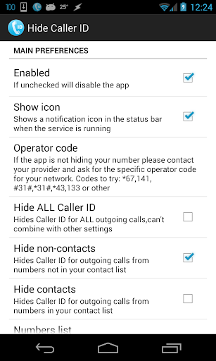 ✔ The settings can be combined to have for instance hiding your caller id from anybody not in your contact list + manually added numbers that might be in the contact list.