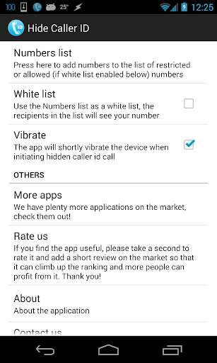 The app will automatically hide your number and the other party will receive the call as: "Unknown" "Private" or "Withheld" etc. It works for outgoing CALLS only, it does not work with outgoing SMS!