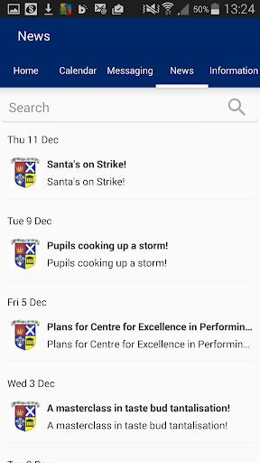Shows all the latest stories from your school or organisation. If you tap on any news item you will be able to see more detail.