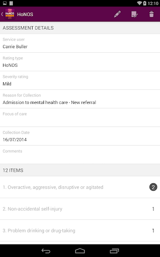 • HoNOS: for adult service users (aged 18 – 65 years)