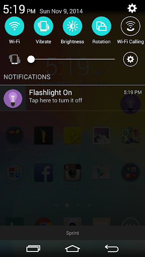 - No app opens when the icon is pressed but the light turns on, so you can quickly turn on your flashlight in a hurry.