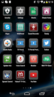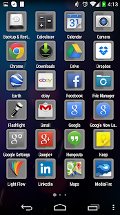 Contains "Round", "Square", "Octagon" and "Glass" themes with four style (Coloured, Dark, Halo, Light) for each of them (note: No full colour Glass theme yet), giving a total of 15 different themes to choose from. These are all simple icon background themes, and do not theme any individual icons.