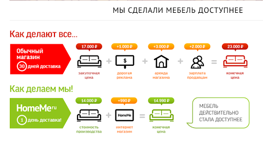 Мы делаем мебель доступной настолько, насколько это возможно сегодня в России: исключаем все звенья, которые увеличивают цену товара.