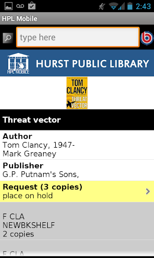 The Hurst Public Library (HPL) Mobile App lets you search for books, movies, music and more!